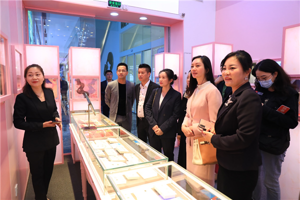 本次活動中,人大代表們還走進商場品牌門店、網(wǎng)紅店與消費者互動。代表們走進周大生珠寶參股品牌大生美門店,被為大生美設(shè)計的星座極光大師系列作品所吸引目光。在翠綠門店,代表們對金箔制成的千里江山圖贊不絕口?!敖鸩谱鞒蓴?shù)米長的畫,這個工藝實在是高?!贝韨冊谝慌愿袊@道。