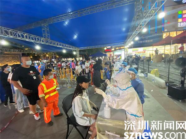 夜晚仍在進行核酸采樣的深圳市羅湖醫(yī)院集團醫(yī)護