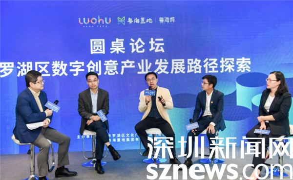 活動最后,深圳市文體局文化產(chǎn)業(yè)處處長熊德昌、羅湖區(qū)文體局文產(chǎn)辦負(fù)責(zé)人周海濤、深職院數(shù)字創(chuàng)意學(xué)院院長王效杰、深圳市寶視達(dá)廣告控股有限公司董事長李志光、戴德梁行華南區(qū)項目及企業(yè)部董事楊薇等5位嘉賓,以“羅湖區(qū)數(shù)字創(chuàng)意產(chǎn)業(yè)發(fā)展路徑探索”為主題展開了精彩的探討交流,從多個角度對羅湖區(qū)產(chǎn)業(yè)政策制定、數(shù)字創(chuàng)意產(chǎn)業(yè)聚焦方向以及對未來與香港聯(lián)動的合作展望分享了各自的獨(dú)特見解。