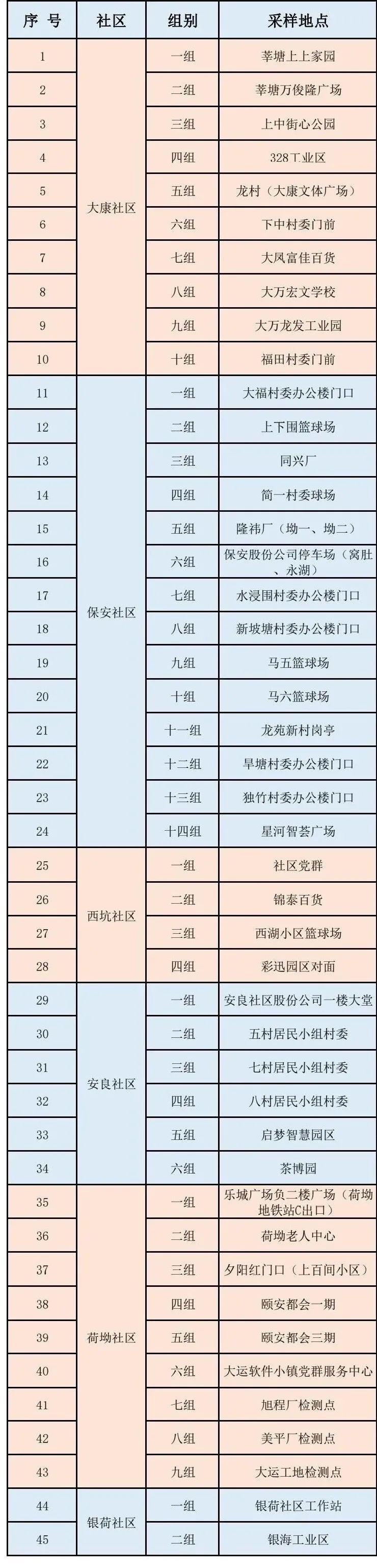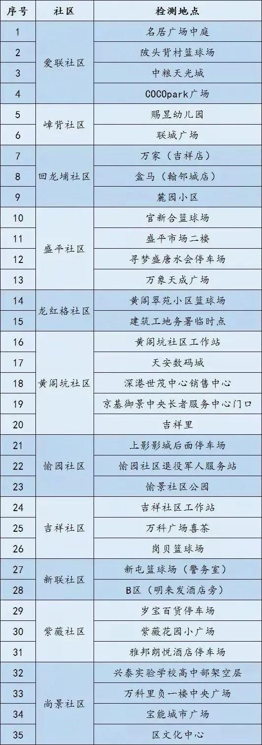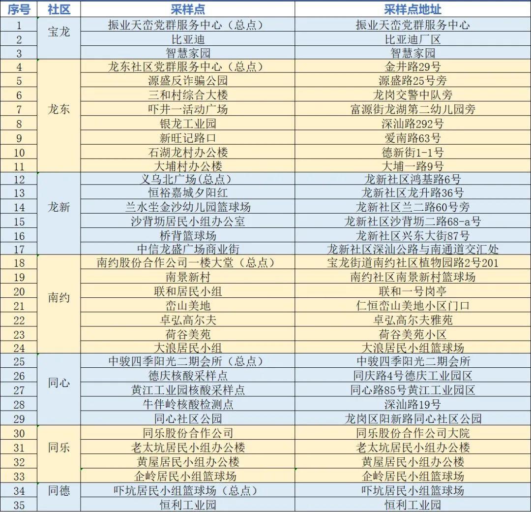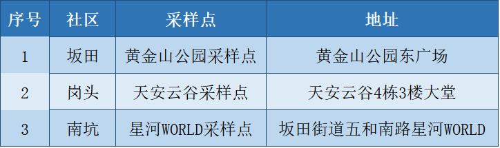 根據(jù)疫情防控需要,為最大程度保障人民群眾生命安全和身體健康,龍崗區(qū)各街道于1月10日開展新一輪免費(fèi)核酸檢測以下點位統(tǒng)計截至1月10日。各點位動態(tài)更新請以社區(qū)通知及現(xiàn)場實際情況為準(zhǔn)。