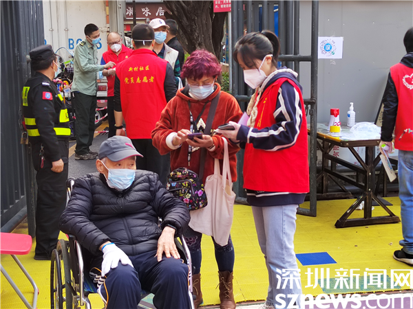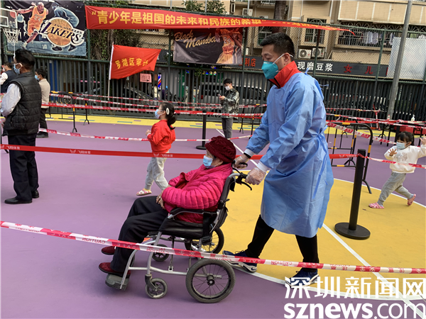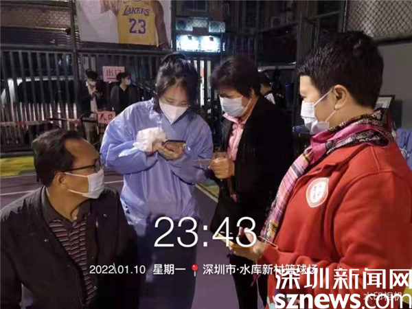 由于樓宇建設年代久遠,基礎設施較為落后,核酸檢測點設在新村社區(qū)僅有的一個籃球場空地上。羅湖區(qū)審計局下沉干部與社區(qū)黨委精心謀劃,按照“隔離檢測、分流進場、專崗專人”的原則,在長28米、寬15米的小方陣里,搭起了6條核酸檢測通道,按照引導員、計數員、掃碼員、講解員等不同職能,重構了檢測流程,定人定崗“流水線”工作,迅速提升了檢測效率。