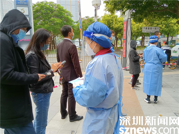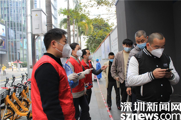 1月14日,深圳市京基智農時代股份有限公司總部黨支部黨委副書記張玲帶領5位黨員,火速來到禧程酒店臨時檢測點,經過簡短的培訓,他們集體上崗,各就其位。有的維持秩序,有的在外圍協(xié)助查驗綠碼,有的協(xié)助出示粵酸碼。黃子亮和彭乾偉穿上防護服,現(xiàn)學現(xiàn)做,使用自己的手機為前來采用的市民掃描粵酸碼。他們都是青壯年,雖然這是關鍵崗位,但他們一學就會,很快上手。十人一管,掃碼上傳,有條不紊,忙而不亂。