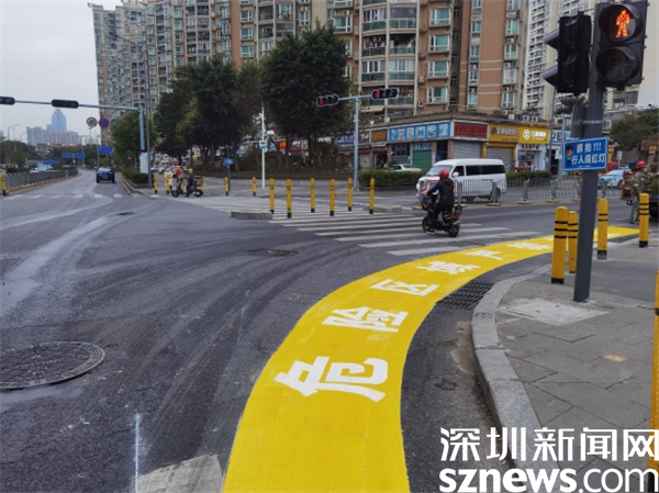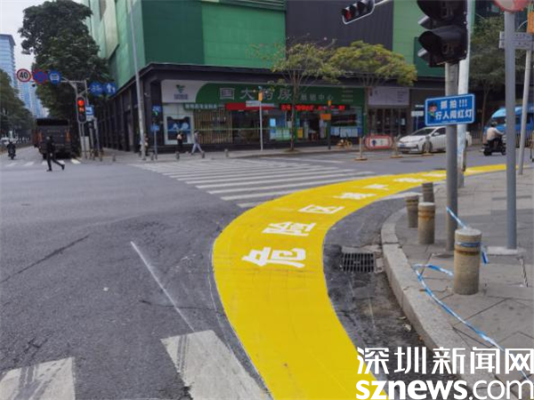 目前,羅湖轄區(qū)16個(gè)右轉(zhuǎn)彎危險(xiǎn)區(qū)警示帶試點(diǎn)設(shè)置工作已初步完成,警示帶的視覺(jué)效果清晰醒目,既能夠直觀地警示行人及非機(jī)動(dòng)車禁止進(jìn)入機(jī)動(dòng)車道等待紅綠燈,又能提醒右轉(zhuǎn)彎車輛在保證安全的前提下“轉(zhuǎn)大彎”,從而起到提升行人、非機(jī)動(dòng)車、大型車輛駕駛員危險(xiǎn)意識(shí)的作用。