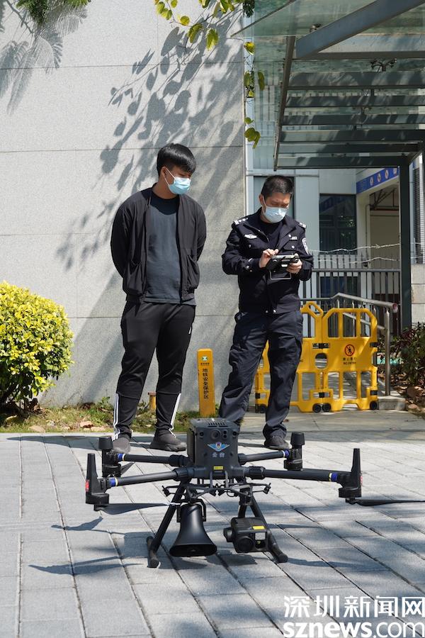 “為了您和家人的健康,所有在桂園街道轄區(qū)工作、生活的居民,從2月24日起連續(xù)4天實行全員核酸檢測,4天4檢。轄區(qū)內(nèi)所有物業(yè)小區(qū)、商業(yè)樓宇、市場等場所均設(shè)置卡口,人員進(jìn)入需掃描“場所碼”……”中午,記者在桂園街道鹿苑小區(qū)外見到,民警與無人機飛手正操控著一款“神兵利器”,助陣疫情防控,空中喊話管控、防范區(qū)居民,快速傳遞最新防疫信息。