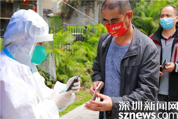 從2月17日開始,劉曉勇加入安保公司,被派到羅湖區(qū)東曉街道支援疫情防控工作,至今已有13天,13天里,他跟隨隊伍轉(zhuǎn)遍了東曉街道各個核酸檢測點,從分流人群、維持秩序,到掃碼、引導居民操作、核酸檢測點布置、采樣結(jié)束收尾……對每個流程都了如指掌;13天里,他每天工作十幾個小時,從早上九點到晚上十點、十一點,只在中午輪班吃飯的時候有十幾分鐘休息時間。