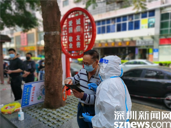 為做好核酸檢測(cè)應(yīng)檢盡檢、愿檢盡檢、不漏一戶、不漏一人。3月5日—6日周末期間,仙湖社區(qū)各核酸檢測(cè)點(diǎn)提前就位,各項(xiàng)檢測(cè)工作正常進(jìn)行?!罢?qǐng)來(lái)檢測(cè)核酸的居民朋友,打開(kāi)微信掃一掃場(chǎng)所碼,打卡成功后,切換粵核酸二維碼給工作人員掃碼。接種新冠疫苗48小時(shí)之內(nèi)不能檢測(cè)核酸,謝謝配合?!痹诨ヂ?lián)網(wǎng)產(chǎn)業(yè)園區(qū)的核酸點(diǎn)位,仙湖社區(qū)黨群服務(wù)中心主任劉紅艷腰間圍上裝有試管的袋子,邊掃碼邊宣傳,忙的不亦樂(lè)乎。她說(shuō):“圍著袋子是為了提高掃碼效率,我們每天檢測(cè)7000多人,上千遍都重復(fù)同樣的話,一個(gè)字都不會(huì)錯(cuò)。居民們都很親切的叫我們‘愛(ài)碼士’小分隊(duì),我們也很喜歡這樣的‘愛(ài)稱’”。