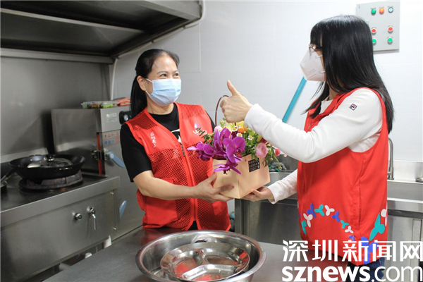 在社區(qū)廚房,老圍社區(qū)居民周文清正在忙碌,疫情開(kāi)始以來(lái),社區(qū)擔(dān)負(fù)著下沉人員和醫(yī)務(wù)人員的中餐和晚餐,每餐四五十人吃飯,任務(wù)繁重,廚師一人根本忙不過(guò)來(lái)。家住老圍花園的社區(qū)居民賴秀文、周文清得知情況后,立刻趕來(lái)幫廚,洗菜、切肉、炒菜、分裝飯盒、搞衛(wèi)生,樣樣都搶著干。羅湖區(qū)最美家庭賴秀文,一連兩個(gè)星期在社區(qū)幫廚,發(fā)揮她高超的廚藝,將每一道菜都做得色香味俱全。有了這些熱心居民的協(xié)助,一線人員得以及時(shí)吃上熱乎乎的飯菜,保障了防疫工作有序進(jìn)行。她們用自己的方式參與疫情防控,為社區(qū)安寧貢獻(xiàn)一己之力。