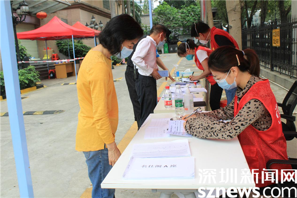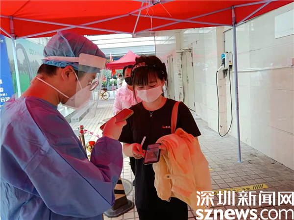 楊帆今年22歲,去年7月份大學(xué)畢業(yè)來到深圳。他說,一來深圳,就愛上了這座年輕的城市,希望自己能在這里開花結(jié)果?!艾F(xiàn)在深圳遇到了難處,作為年輕人,我沒理由不參與這場戰(zhàn)疫?!彼诿碎w小區(qū)配合同事陳大盛,在隊(duì)伍外圍維持秩序,核實(shí)每個(gè)居民的核酸記錄。