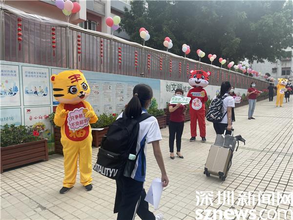 這是翠園東曉中學為歡迎學生返校,舉行的溫馨復學儀式,還為孩子們派發(fā)了暖心防疫用品。“回家的心情好到爆表”“奮斗沖刺、金榜題名”……不少孩子們紛紛舉著勵志牌與“小老虎”合照,宣告新學年的奮斗目標。