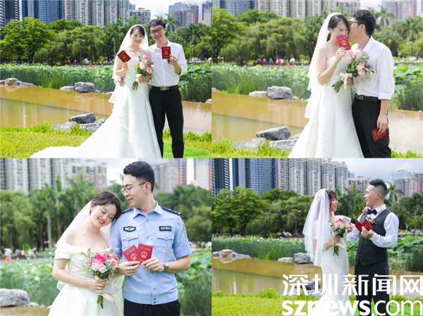 讀特客戶端·深圳新聞網(wǎng)2022年6月17日訊(記者 李慧 通訊員 楊嘉雯)6月中旬的洪湖公園,荷花盛開,17日早上,羅湖區(qū)民政局把婚姻登記頒證廳搬到這優(yōu)美環(huán)境、文明的氛圍中,舉辦“新時代心羅湖,荷創(chuàng)文明新婚俗”婚禮登記集體頒證儀式?,F(xiàn)場以并蒂蓮為背景,以文明、時尚、簡約作為主題元素,提倡“重登記、強(qiáng)責(zé)任、崇節(jié)儉”的文明新婚俗。