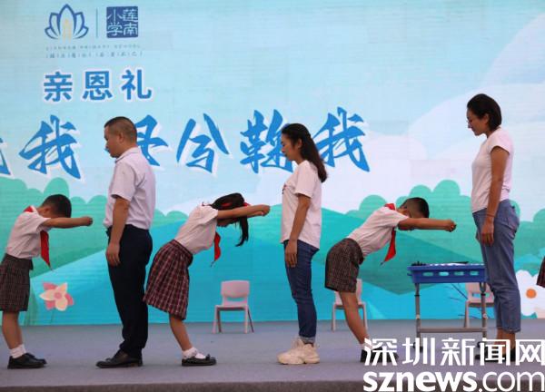 活動由詩歌吟唱《鹿鳴》拉開了序幕。“父兮生我,母兮鞠我”,熒幕上播放著子女和父母溫馨互動的視頻,隨后上演的親恩禮,表達(dá)了子女對父母的深深愛意。當(dāng)主持人問到一位家長時,她眼含熱淚地說:“我此刻很激動也很幸福,孩子給我捶背還給我寫卡片,感謝這次儀式感滿滿的活動,拉進(jìn)了我們家長和孩子的距離,真的非常暖心!”