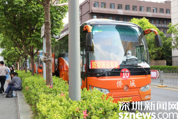 在小區(qū)外,一排防疫轉(zhuǎn)運(yùn)專車停靠路邊,工作人員有序引導(dǎo)小區(qū)的居民登記上車。