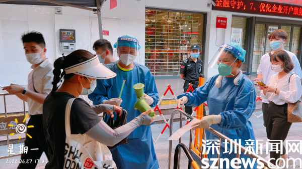 除了“人力”支援,“物力”支援也沒落下??紤]到大部分核酸檢測點的現場工作人員要在高溫下工作,南湖街道周邊商戶及居民自發(fā)送來米湯、甘蔗汁等防暑物資,為防疫一線工作人員“送清涼”。