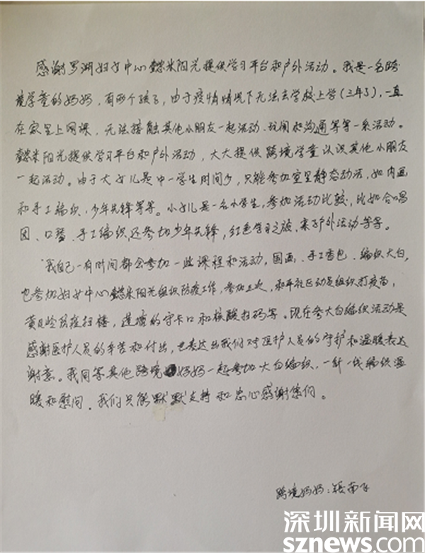 讀特客戶端·深圳新聞網(wǎng)2022年8月25日訊(記者 李慧 通訊員 黃霞)疫情發(fā)生以來,跨境兒童的家庭生活也受到頗多的關(guān)注,張南飛便是羅湖區(qū)其中一名普通的跨境學(xué)童媽媽,她的勵(lì)志故事鼓舞著身邊許多人。
