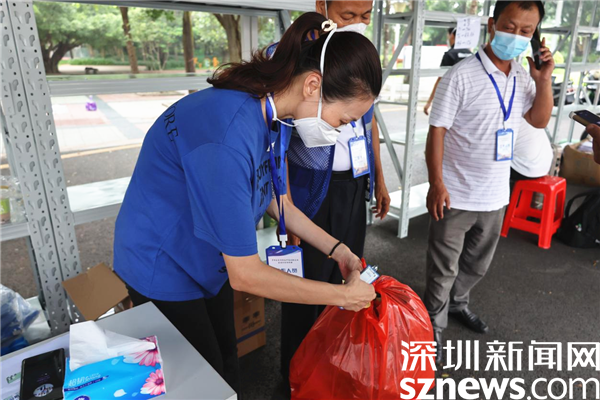 在新平村口,記者看到村口外圍已用水馬進(jìn)行合圍,來(lái)自街道、疾控、社區(qū)還有大望實(shí)業(yè)股份有限公司、梧桐山實(shí)業(yè)股份有限公司等單位的工作人員正在準(zhǔn)備開(kāi)展工作。在合圍的多個(gè)出入口處設(shè)置了快遞、外賣(mài)投放點(diǎn),由防疫人員為中、高風(fēng)險(xiǎn)的居民送貨上門(mén)。
