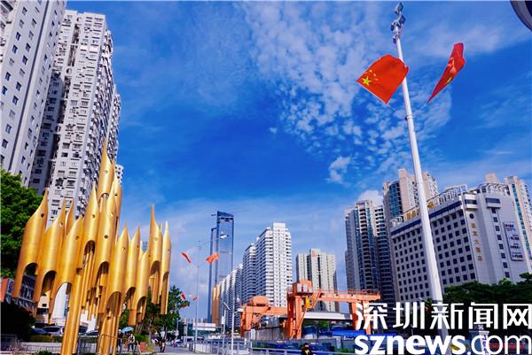讀特客戶端·深圳新聞網(wǎng)2022年10月1日訊(記者 劉嘉敏)國慶假期第一天,行走在羅湖區(qū)的大街小巷,處處洋溢著喜慶的濃厚氛圍。一面面鮮紅的國旗懸掛在城區(qū)主次干道,在藍(lán)天白云的襯托下,鮮艷的“中國紅”迎風(fēng)飄揚,成為城區(qū)一道最靚麗的風(fēng)景線。深圳新聞網(wǎng)記者帶著鏡頭走進(jìn)羅湖,將這一幕幕迎風(fēng)飄揚的“紅色”定格。