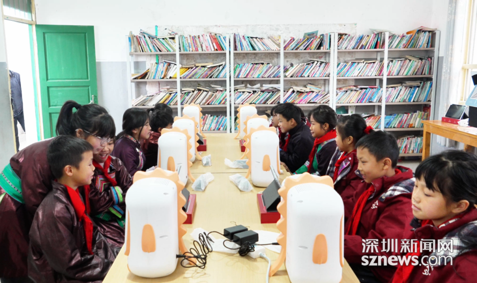 培秀小學(xué)學(xué)生們?cè)凇皾i心”多媒體閱覽室使用智能護(hù)眼產(chǎn)品。(來(lái)源:皇崗邊檢站)