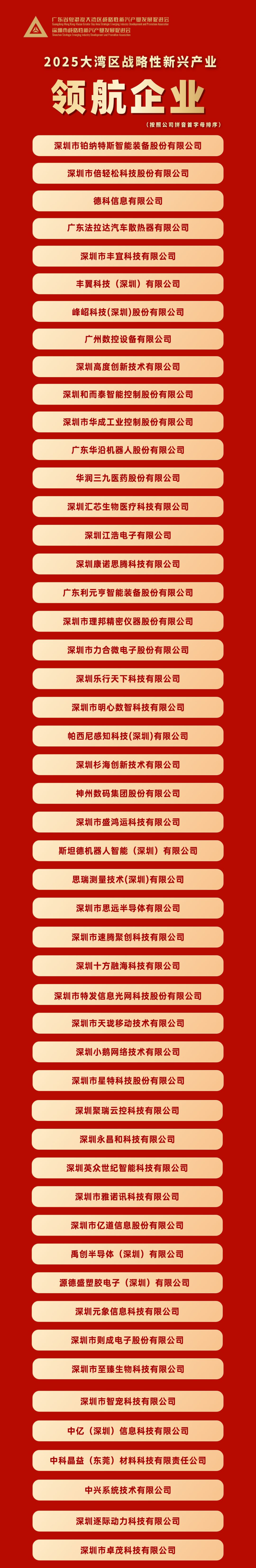 深圳新聞網(wǎng)2026年2月4日訊(記者 朱佳若)近日,2025粵港澳大灣區(qū)戰(zhàn)略性新興產(chǎn)業(yè)領(lǐng)航企業(yè)榜單正式發(fā)布,50家深耕人工智能、半導(dǎo)體、生物醫(yī)藥等前沿領(lǐng)域的科技企業(yè),以及9位行業(yè)拓荒人物、20位青年領(lǐng)袖入選。