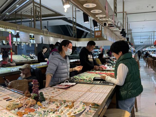 雕工精湛的翡翠擺件、瑩潤(rùn)剔透的玉鐲、時(shí)尚新穎的文創(chuàng)掛件……在玉器賣場(chǎng)內(nèi),翠色流轉(zhuǎn)、琳瑯滿目,各類玉飾在燈光下熠熠生輝,宛如一場(chǎng)視覺(jué)盛宴。據(jù)悉,四會(huì)擁有18個(gè)大型玉器專業(yè)市場(chǎng),擁有玉器經(jīng)營(yíng)主體3.3萬(wàn)戶,產(chǎn)業(yè)規(guī)模位居全國(guó)前列,產(chǎn)品暢銷海內(nèi)外。玉器掛件、擺件分別占全國(guó)市場(chǎng)份額的70%和80%以上。