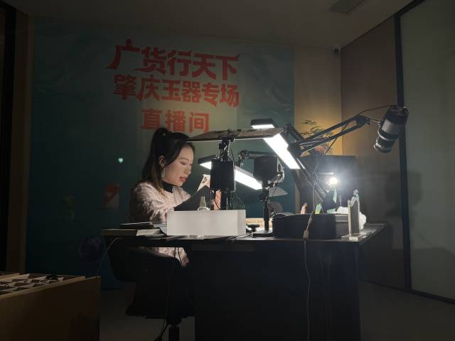 四會(huì)市長(zhǎng)直播推介四會(huì)玉器。 南方+ 盧舒曼 拍攝