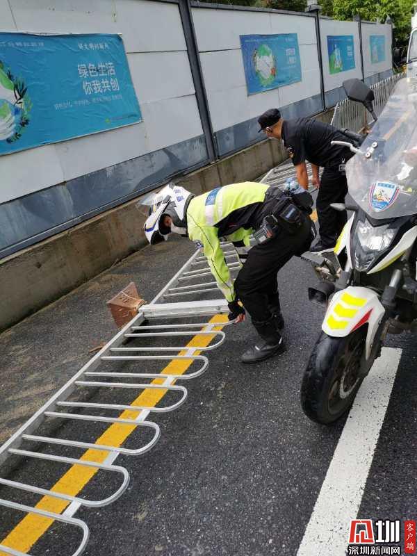 10月3日16時40分左右,正在羅湖區(qū)金光華路段開展整治行動的交警遇到一名女士求助,稱車子卡在停車場出口的石墩上。