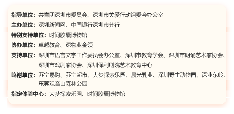 讓閱讀成為動(dòng)人的風(fēng)景,讓故事的魅力感動(dòng)深圳。為助力建設(shè)良好的青少年閱讀環(huán)境,激發(fā)學(xué)生閱讀興趣,倡導(dǎo)親子閱讀,共建和諧家庭關(guān)系。2020年,第二十一屆深圳讀書(shū)月主題活動(dòng)“誰(shuí)是故事大王·第四季”在共青團(tuán)深圳市委員會(huì)、深圳市關(guān)愛(ài)行動(dòng)組委會(huì)辦公室的指導(dǎo)下再出發(fā)。更長(zhǎng)的活動(dòng)周期,更豐富的參與形式,更專(zhuān)業(yè)的賽制,“誰(shuí)是故事大王·第四季”等你來(lái)解鎖與挑戰(zhàn)!