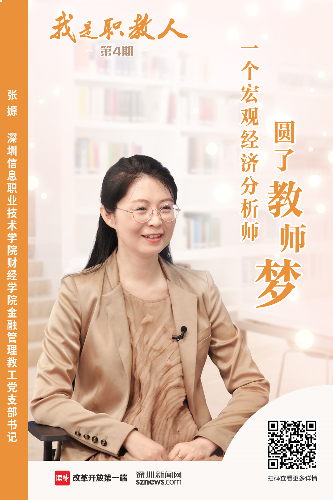 深圳信息職業(yè)技術(shù)學(xué)院財經(jīng)學(xué)院金融管理教工黨支部書記張嫄,是一名80后的博士研究生,從小夢想成為老師的她在博士畢業(yè)后卻進入了金融行業(yè),從好夢想到好行業(yè)再到好學(xué)校,張嫄有著萬花筒般的人生經(jīng)歷。