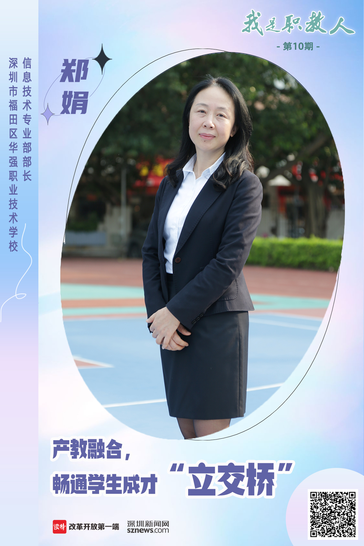 父母的耳濡目染,讓她選擇成為一位教師;職業(yè)教育發(fā)展的重要性,讓她成為了一名職教人,她是深圳市福田區(qū)華強職業(yè)技術(shù)學(xué)校(以下簡稱“華強職?!保┬畔⒓夹g(shù)專業(yè)部部長鄭娟。