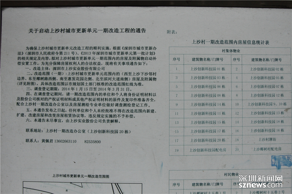 上沙村實業(yè)股份公司前的一期改造工程的宣傳通告