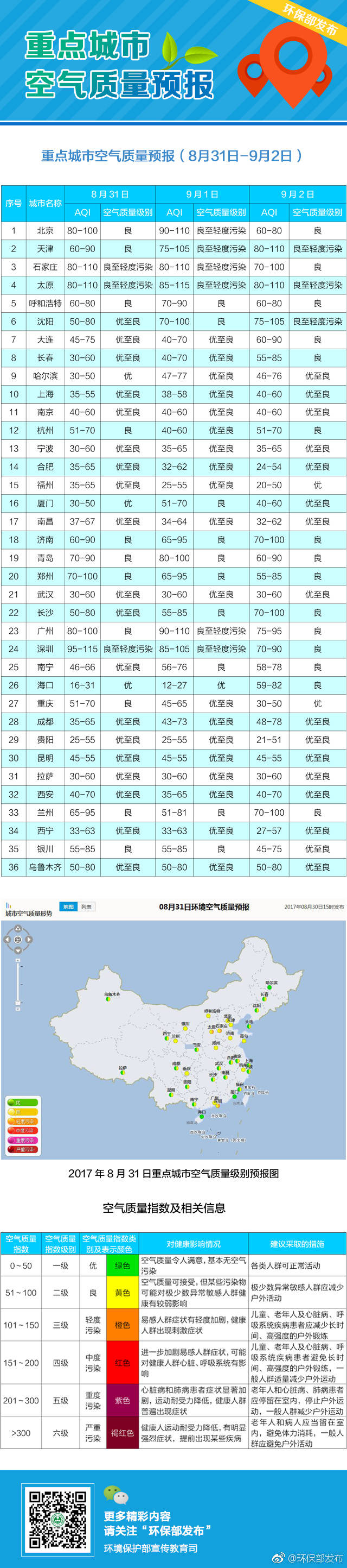 環(huán)保部宣傳教育司微博發(fā)布的空氣質(zhì)量分級(jí)及應(yīng)對(duì)措施。