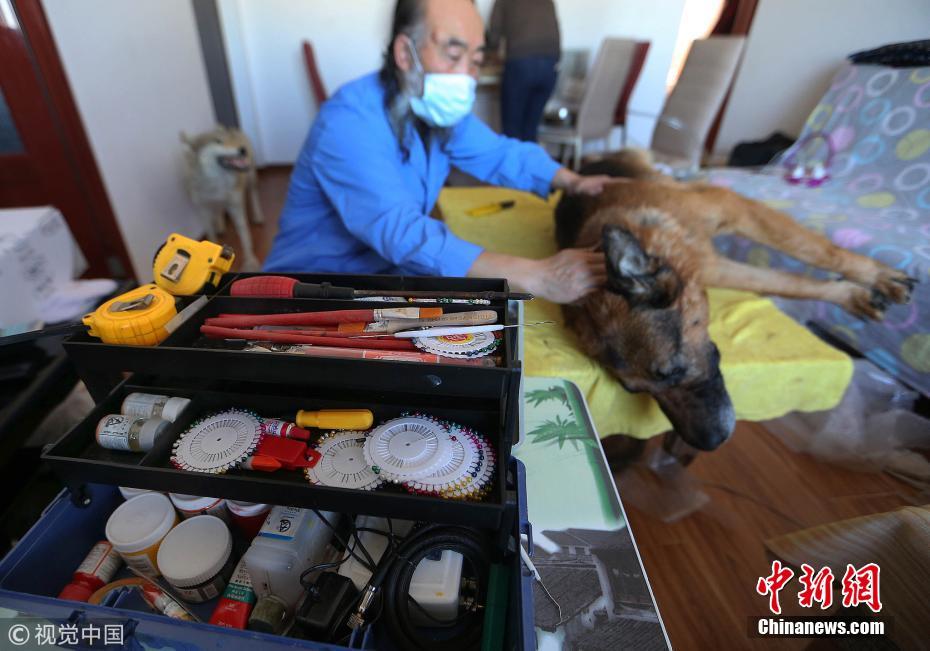2018年春節(jié)期間,前往北京市朝陽區(qū)高碑店鄉(xiāng)大黃莊社區(qū)甲3號的人絡(luò)繹不絕,他們來這里的目的,就是為了讓自己的愛犬“重生”。這家店的主人名叫老郭,是一位動物標本制作師,他對來客常說的一句話就是:“你帶著躺下了的寵物來,我還你一個站起來的它”。圖為郭元虎正在制作狗標本。文字來源:法制晚報 圖片來源:視覺中國