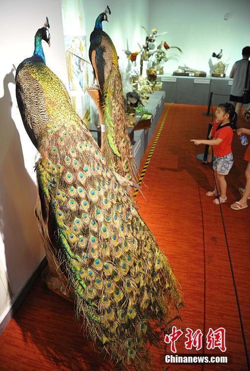 5月27日,各類飛禽走獸活靈活現(xiàn)地出現(xiàn)在民眾的眼前。正在福建博物院展出的第四屆中國動物標(biāo)本大賽的257件惟妙惟肖的標(biāo)本作品集中對外開放,讓民眾如進(jìn)入“動物世界”。本次大賽匯集了全國標(biāo)本制作企業(yè)、博物館、大專院校、研究所等60多家單位參加,標(biāo)本涵蓋哺乳類、鳥類、爬行類、兩棲類、魚類等動物類群的皮張和骨骼標(biāo)本。主辦方希望通過標(biāo)本大賽,向公眾展現(xiàn)動物世界的美麗,宣傳生物多樣性和生態(tài)文明,借鑒吸收國際標(biāo)本制作先進(jìn)經(jīng)驗,提高中國野生動植物標(biāo)本制作的整體水平。圖為大賽參賽的孔雀標(biāo)本。中新社記者 張斌 攝
