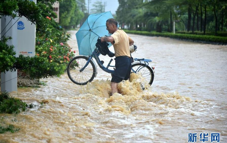 當日,今年第22號臺風“山竹”過境后的廣東陽江陽春市遭遇暴雨襲擊,城市部分區(qū)域出現(xiàn)內(nèi)澇。 新華社記者周科攝