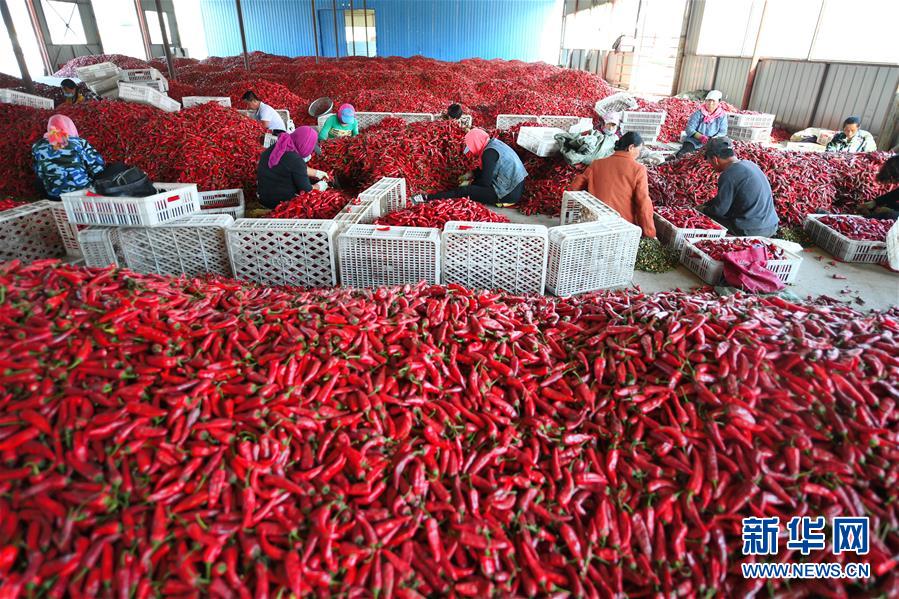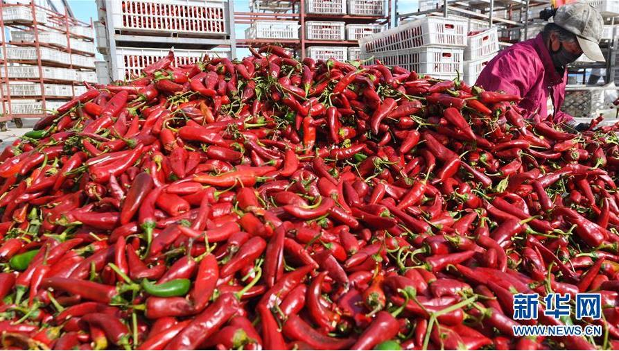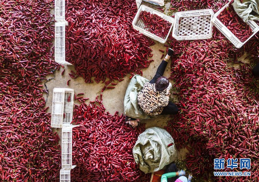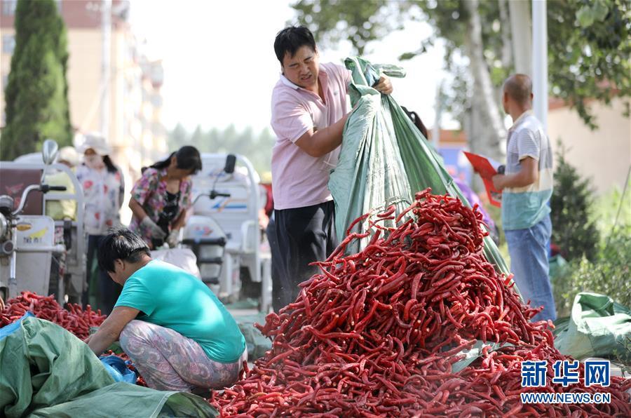 9月16日,阜城縣王集鄉(xiāng)南張莊村農(nóng)民在整理收獲的辣椒。近年來,河北省阜城縣王集鄉(xiāng)在推進(jìn)產(chǎn)業(yè)富民過程中,積極引導(dǎo)農(nóng)民調(diào)整農(nóng)業(yè)產(chǎn)業(yè)結(jié)構(gòu),按照品種特色化、種植規(guī)?;?、產(chǎn)銷一體化的“公司+基地+農(nóng)戶”的經(jīng)營模式,鼓勵(lì)農(nóng)民發(fā)展特色辣椒種植,推行“訂單種植”模式,開辟出了一條農(nóng)民創(chuàng)收新路徑。目前,阜城縣王集鄉(xiāng)辣椒種植面積3100余畝,每畝年收益2500元以上,帶動(dòng)當(dāng)?shù)剞r(nóng)民實(shí)現(xiàn)增收。新華社記者朱旭東攝