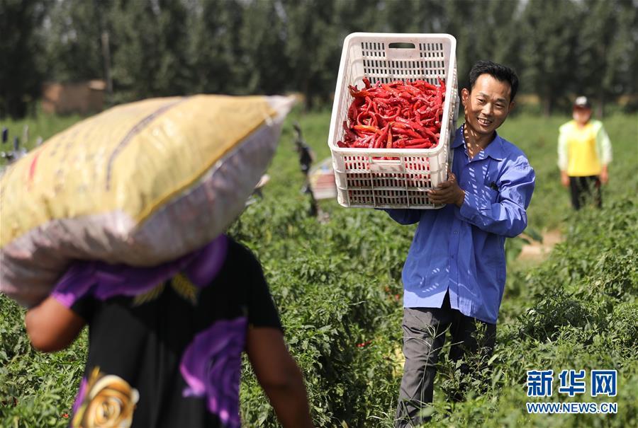 9月16日,阜城縣王集鄉(xiāng)南張莊村農(nóng)民在搬運(yùn)采摘的辣椒。近年來,河北省阜城縣王集鄉(xiāng)在推進(jìn)產(chǎn)業(yè)富民過程中,積極引導(dǎo)農(nóng)民調(diào)整農(nóng)業(yè)產(chǎn)業(yè)結(jié)構(gòu),按照品種特色化、種植規(guī)?;a(chǎn)銷一體化的“公司+基地+農(nóng)戶”的經(jīng)營模式,鼓勵(lì)農(nóng)民發(fā)展特色辣椒種植,推行“訂單種植”模式,開辟出了一條農(nóng)民創(chuàng)收新路徑。目前,阜城縣王集鄉(xiāng)辣椒種植面積3100余畝,每畝年收益2500元以上,帶動(dòng)當(dāng)?shù)剞r(nóng)民實(shí)現(xiàn)增收。新華社記者朱旭東攝