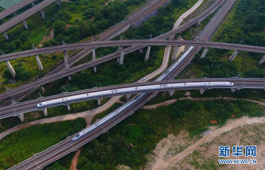 動車行駛在廣西南寧市屯里特大橋上(7月1日無人機拍攝)。 廣西壯族自治區(qū)成立60年來,鐵路建設(shè)發(fā)生翻天覆地的變化。來自中國鐵路南寧局集團有限公司的數(shù)據(jù)顯示,1958年廣西鐵路總里程為1346.3公里,如今廣西鐵路總里程達5191公里。廣西與周邊相鄰省份間實現(xiàn)動車“公交化”開行。此外,北部灣港—重慶班列、東盟海產(chǎn)品冷鏈班列、“百色一號”果蔬專列等的開通和運營,強化了鐵路供給的針對性和有效性。鐵路成為助推廣西經(jīng)濟社會快速發(fā)展的“大動脈”。 新華社記者黃孝邦攝