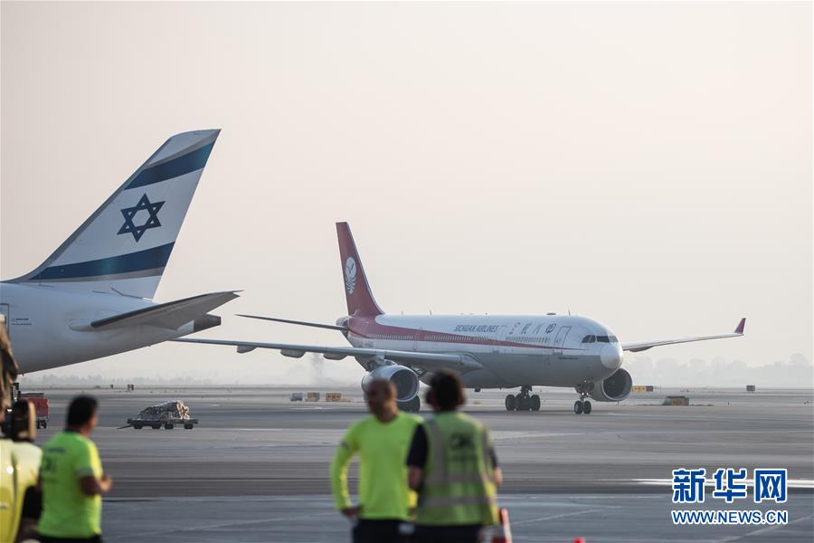 9月26日,四川航空成都至特拉維夫直飛航線首航班機抵達以色列特拉維夫本·古里安國際機場。 新華社記者郭昱攝