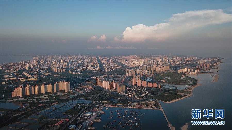 這是夕陽(yáng)下的廣西北海市區(qū)(9月25日無(wú)人機(jī)拍攝,拼接照片)。 新華社記者 黃孝邦 攝