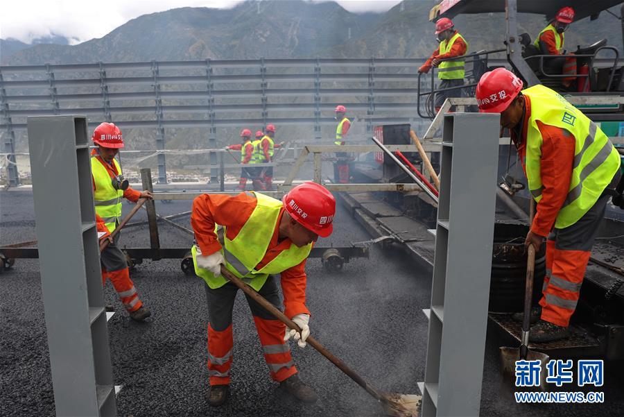 10月1日,建筑工人在雅康高速瀘定大渡河興康特大橋施工現(xiàn)場作業(yè)。當(dāng)日是國慶節(jié),許多勞動者堅守在工作一線,在崗位上度過節(jié)日。新華社記者江宏景攝