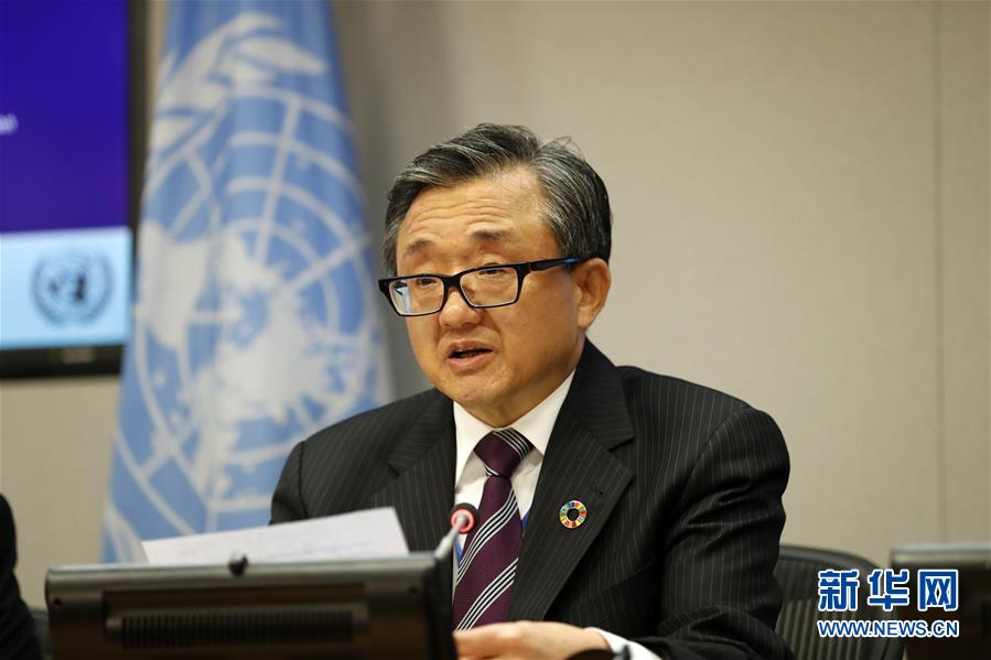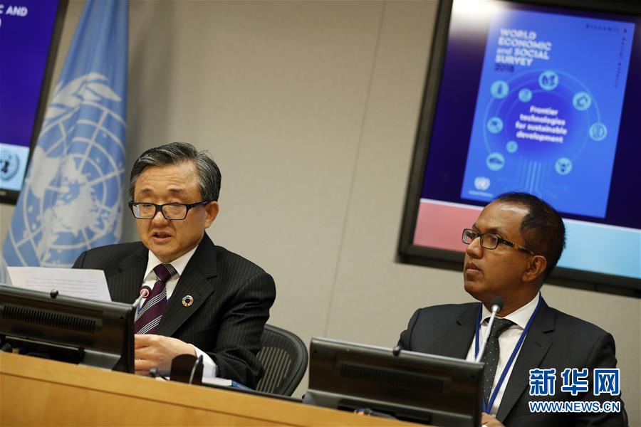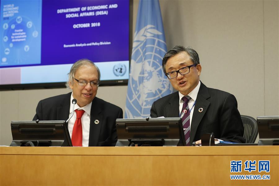 10月8日,在位于紐約的聯(lián)合國總部,聯(lián)合國負責經(jīng)濟和社會事務的副秘書長劉振民向記者介紹《2018年世界經(jīng)濟和社會概覽》。新華社記者李木子攝