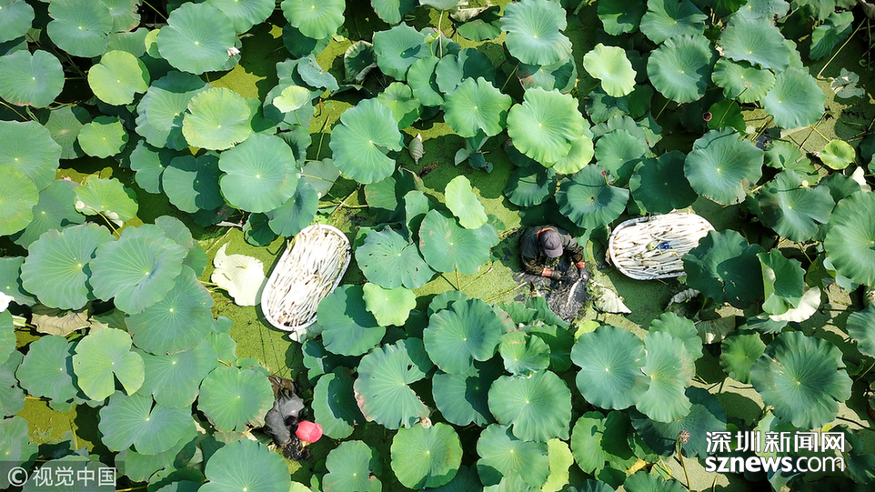 2018年7月25日,江蘇淮安,種植戶(hù)在挖藕帶。