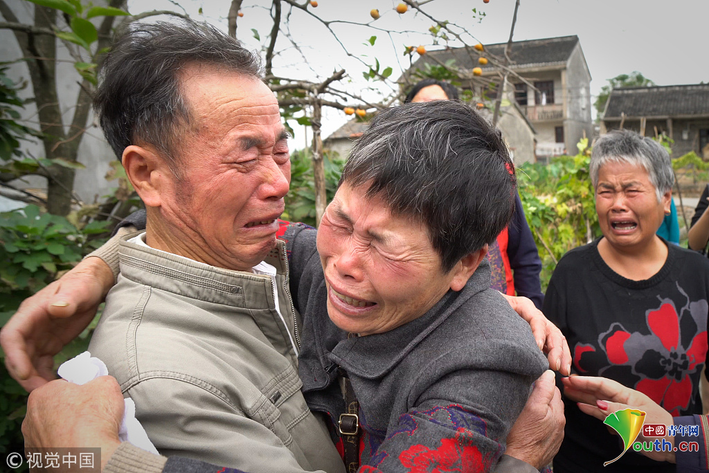 棄女張娟芬來到大姐家認(rèn)親,先后與大姐、二哥擁抱。1960年5月,張娟芬(當(dāng)時(shí)叫何永妹)家中生活困難,在父母的授意下,10歲的她被15歲的二哥遺棄在嘉興火車站,后在海寧養(yǎng)父母家長大。圖片作者:田建明