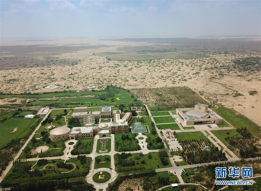 位于內(nèi)蒙古杭錦旗的七星湖沙漠酒店(8月1日無人機(jī)拍攝)。 新華社記者邢廣利攝