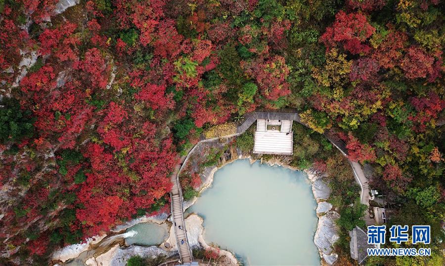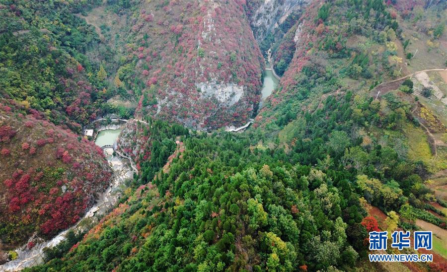 金秋時節(jié),甘肅省隴南市成縣西狹頌景區(qū)層林盡染,峽內(nèi)石崖、池潭、樹木、山峰構成五彩斑斕的秋日美景圖,引人入勝。