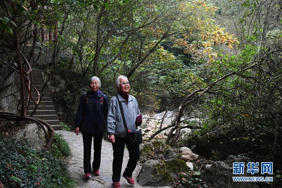 10月16日,兩位老人在西狹頌景區(qū)內(nèi)游覽。 新華社記者 陳斌 攝