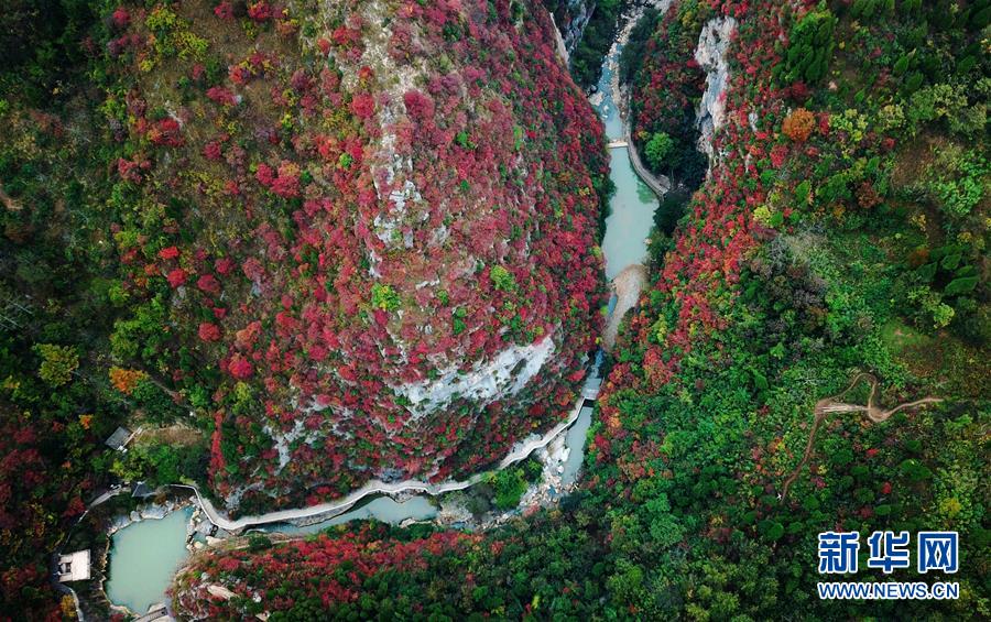 這是西狹頌景區(qū)秋景(10月16日無人機拍攝)。 新華社記者 陳斌 攝