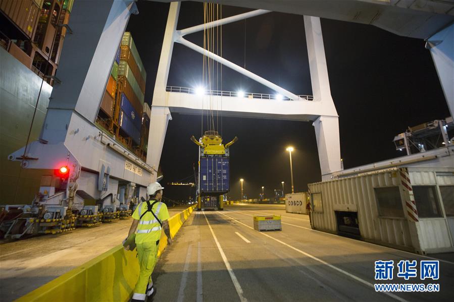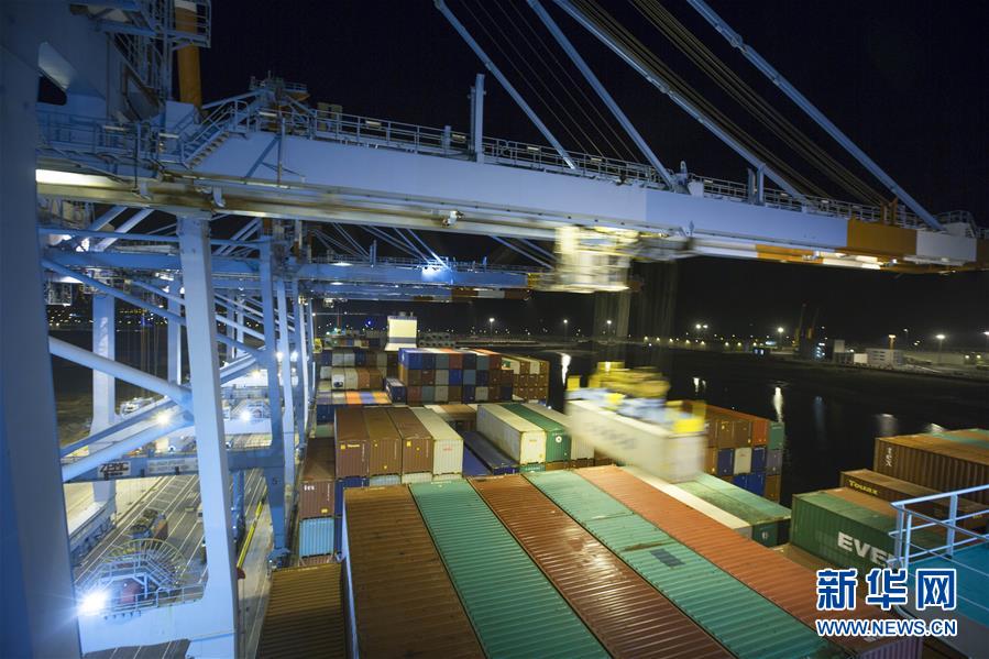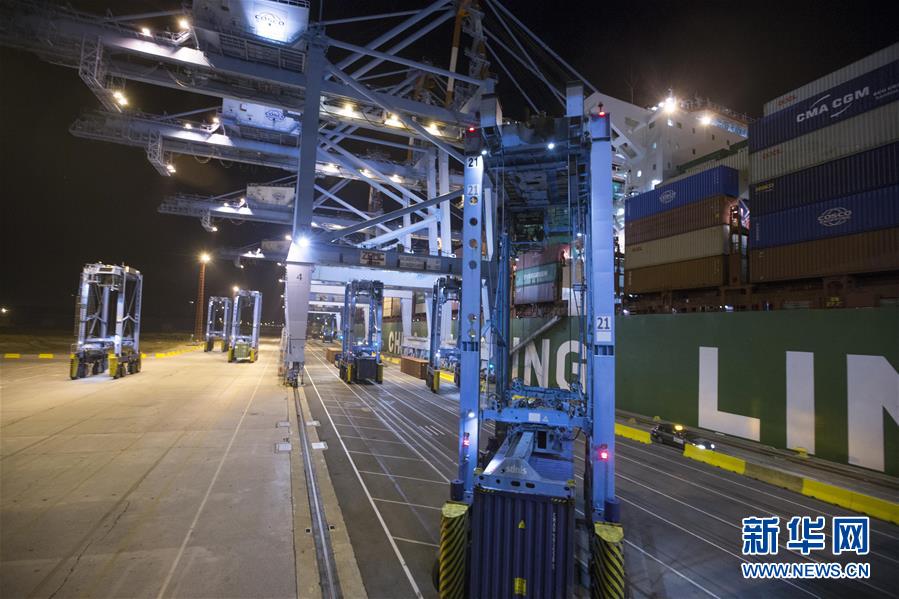 這是10月15日晚在比利時(shí)澤布呂赫港拍攝的正在進(jìn)行裝卸作業(yè)的集裝箱碼頭。新華社記者 葉平凡 攝