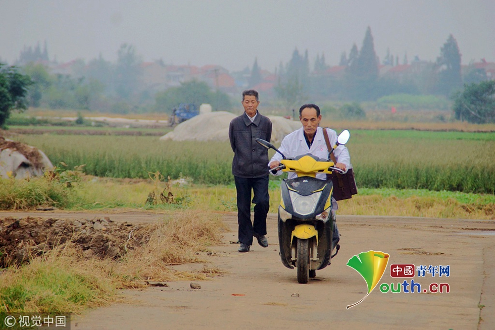 2018年9月26日,湖北孝感,云夢(mèng)縣下辛店鎮(zhèn)白水湖村村醫(yī)陳年祥在村衛(wèi)生室為村民看病治病。對(duì)行動(dòng)不便的病人、老年人,就上門為村民看病問診。圖片作者:陳保忠/視覺中國(guó)