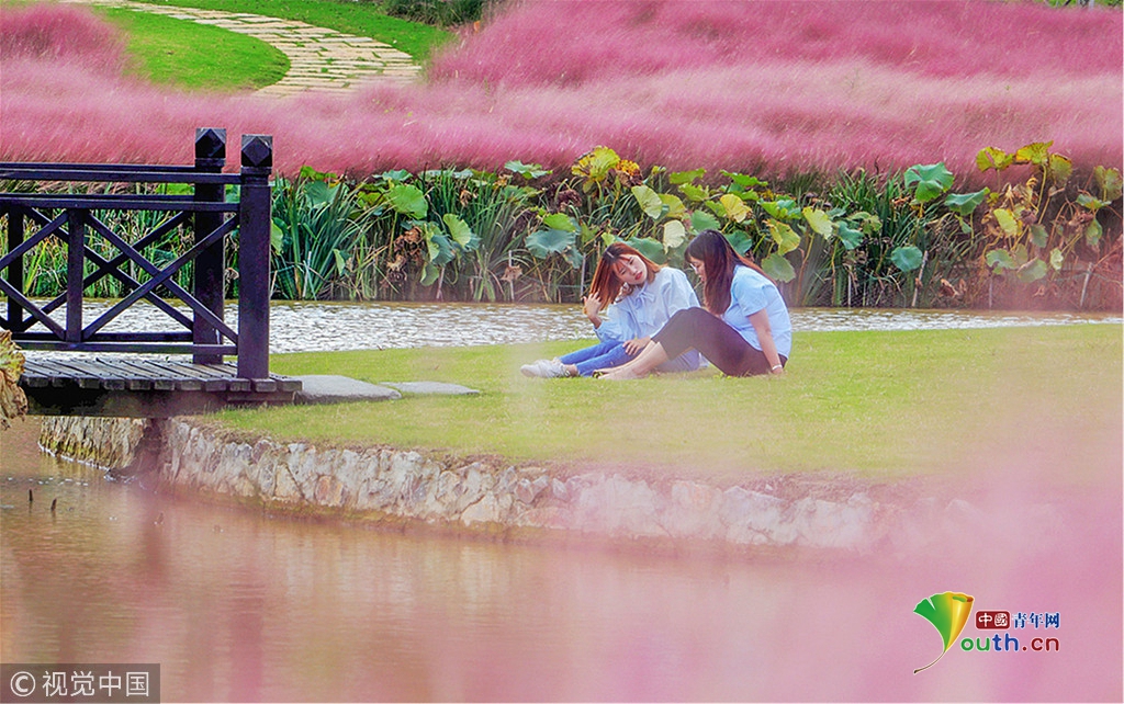當(dāng)?shù)貢r(shí)間2018年10月16日,韓國蔚山,近日,蔚山公園大片粉黛亂子草盛開,粉紅花海浪漫十足,但部分花海遭游客隨意踩踏。圖片作者:Yonhap News Agency