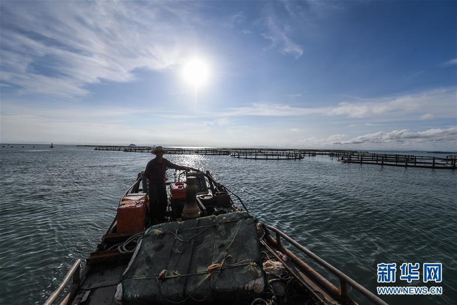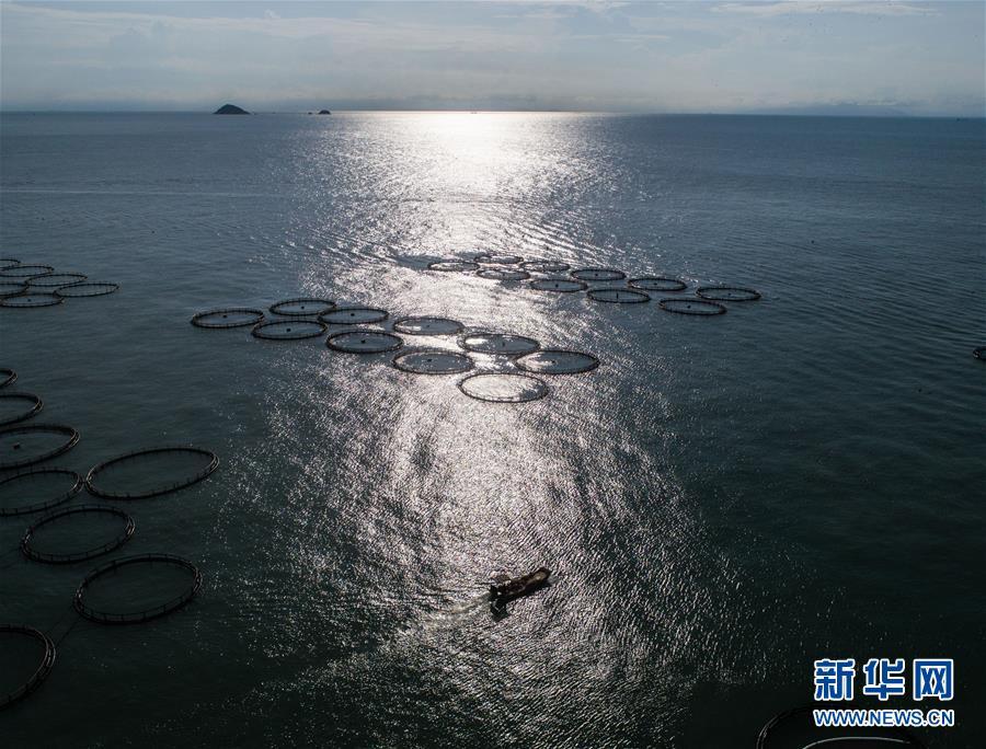 8月18日,南麂島海域的“海上牧場”養(yǎng)殖區(qū)內(nèi),漁民駕駛漁船進行養(yǎng)殖作業(yè)。進入8月,浙江省溫州市平陽縣南麂鎮(zhèn)海域上大片的大黃魚、貽貝等特色海產(chǎn)品養(yǎng)殖區(qū)域迎來豐收季節(jié),養(yǎng)殖戶們駕駛漁船在養(yǎng)殖區(qū)海域進行打撈收獲,在碧海藍(lán)天下構(gòu)成了一幅“海上牧場”的美麗豐收景象。近年來,南麂鎮(zhèn)政府引導(dǎo)漁民養(yǎng)殖戶充分發(fā)揮“靠海吃?!钡馁Y源優(yōu)勢,大力發(fā)展海洋養(yǎng)殖經(jīng)濟和海島旅游經(jīng)濟,實現(xiàn)了南麂由“生態(tài)美”向“產(chǎn)業(yè)美”,“產(chǎn)業(yè)美”向“經(jīng)濟美”的轉(zhuǎn)變。同時該鎮(zhèn)堅持以大黃魚、貽貝等為特色產(chǎn)業(yè)支撐,精準(zhǔn)發(fā)展高效海洋養(yǎng)殖業(yè),重點培養(yǎng)一批新型職業(yè)漁民,依靠專業(yè)技術(shù)支持,實現(xiàn)深海仿生養(yǎng)殖,讓好生態(tài)造就好品質(zhì),重點打造南麂養(yǎng)殖品牌,組建營銷網(wǎng)絡(luò),拓展特色海產(chǎn)品市場。新華社記者 徐昱攝